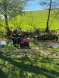 Zur Sicherstellung der Löschwasserversorgung wurde eine B-Saugleitung von der Feldaist bis zum Brandobjekt verlegt. Mithilfe unserer Pumpe sowie diese der FF Pregartsdorf konnte das Wasser zu den Tanklöschfahrzeugen der FF Pregarten befördert werden. Als die Saugleitung gelegt war, wurde noch eine Ölsperre errichtet und deren Einsatz unter realitätsnahen Bedingungen ausprobiert.