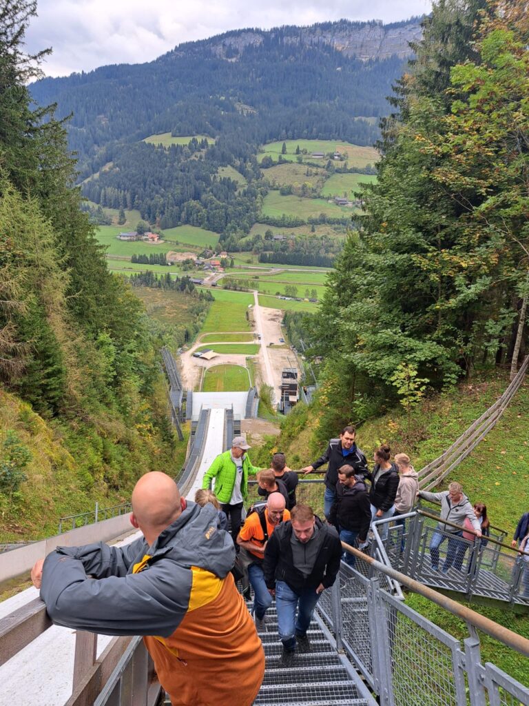 Der Sonntag begann mit einem Besuch der Skiflugschanze Kulm. Nach dem Mittagessen beim Gasthof Thomahof ging es weiter zur Bio-Käserei Stift Schlierbach. Den Abschluss bildete ein gemeinsames Abendessen im Landhotel Schicklberg, bevor wir wieder nach Hause fuhren.