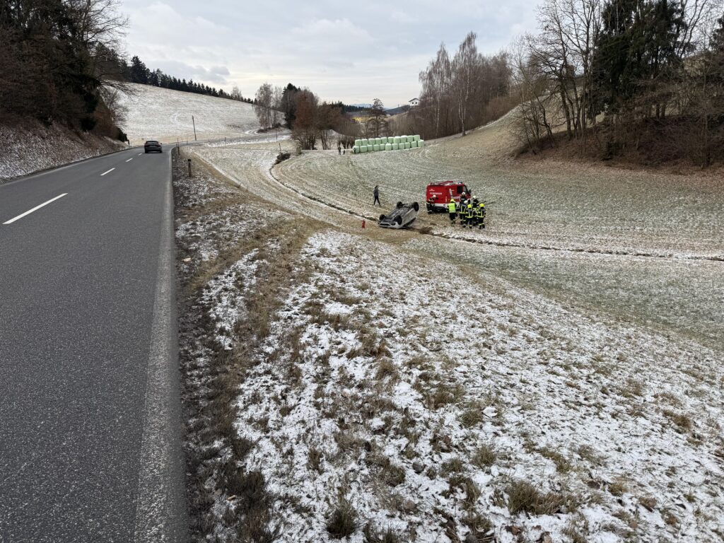 Die Lenkerin konnte sich glücklicherweise selbstständig aus dem Unfallfahrzeug befreien und konnte die Einsatzkräfte umgehend verständigen. Wir sicherten die Unfallstelle ab und nahmen die Bergungsarbeiten vor. Die Lenkerin wurde vom Rettungsdienst zur weiteren medizinischen Abklärung in das Landeskrankenhaus Freistadt gebracht. Ein durchgeführter Alkovortest verlief negativ.
