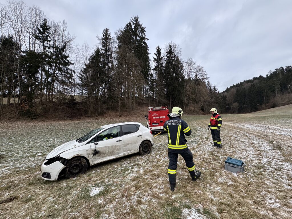 Am Altjahrstag, den 31. Dezember 2025 wurden wir zu einem Verkehrsunfall auf der Gutauer Landesstraße alarmiert. Um ca. 9 Uhr morgens war eine 20-jährige Lenkerin mit ihrem Pkw von Gutau kommend in Richtung Pregarten unterwegs, als sie auf der salzgestreuten Fahrbahn ins Schleudern geriet.
